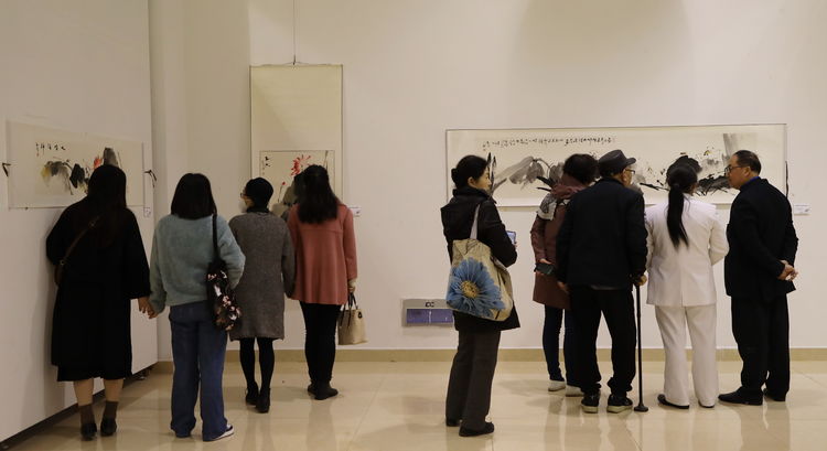 刘老与嘉宾以及学院师生参观了画展